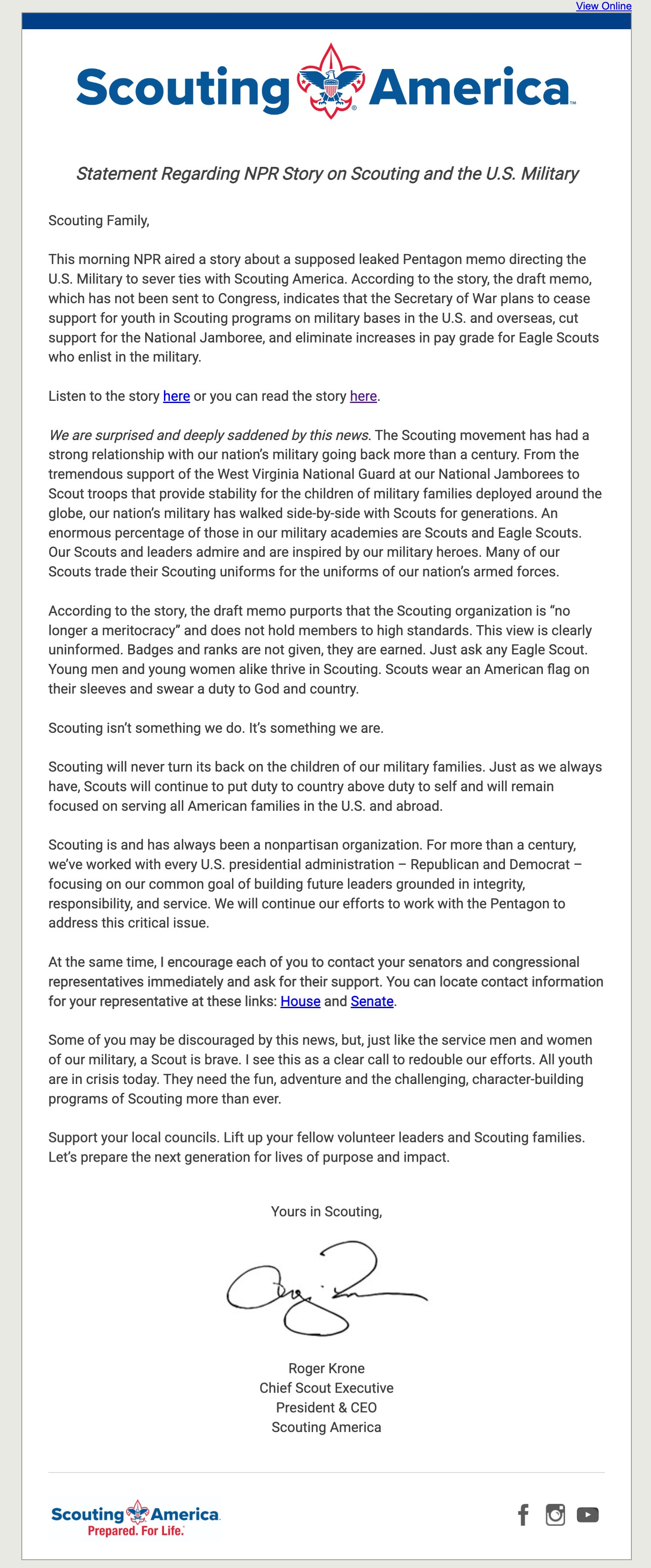 The people in Pete Hegseth’s DoD that made this decision seem not to understand this. Instead, they are dragging scouting into their imbecilic culture war, venerating sexism for its own sake.